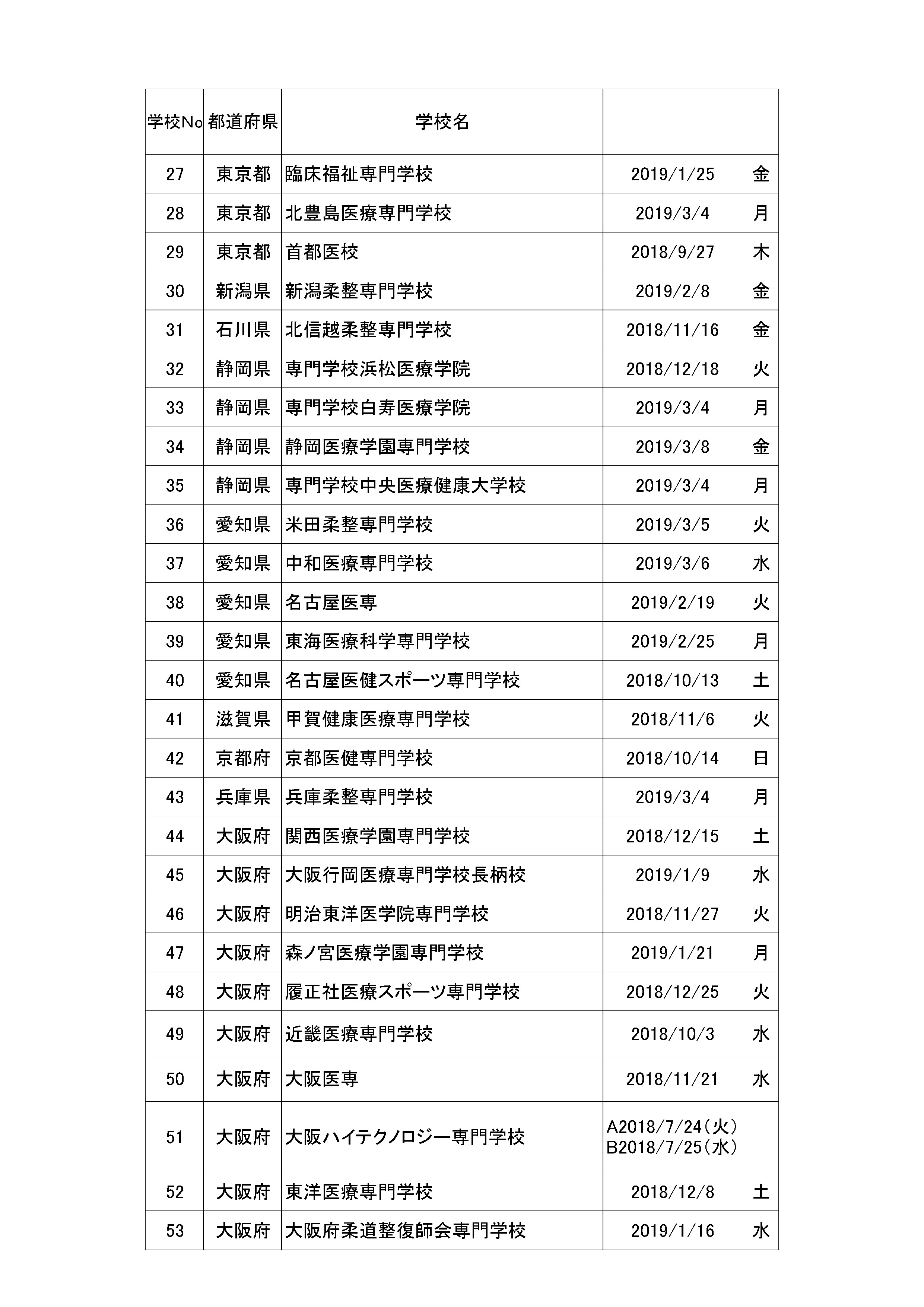 平成30年度 業界説明会 日程表